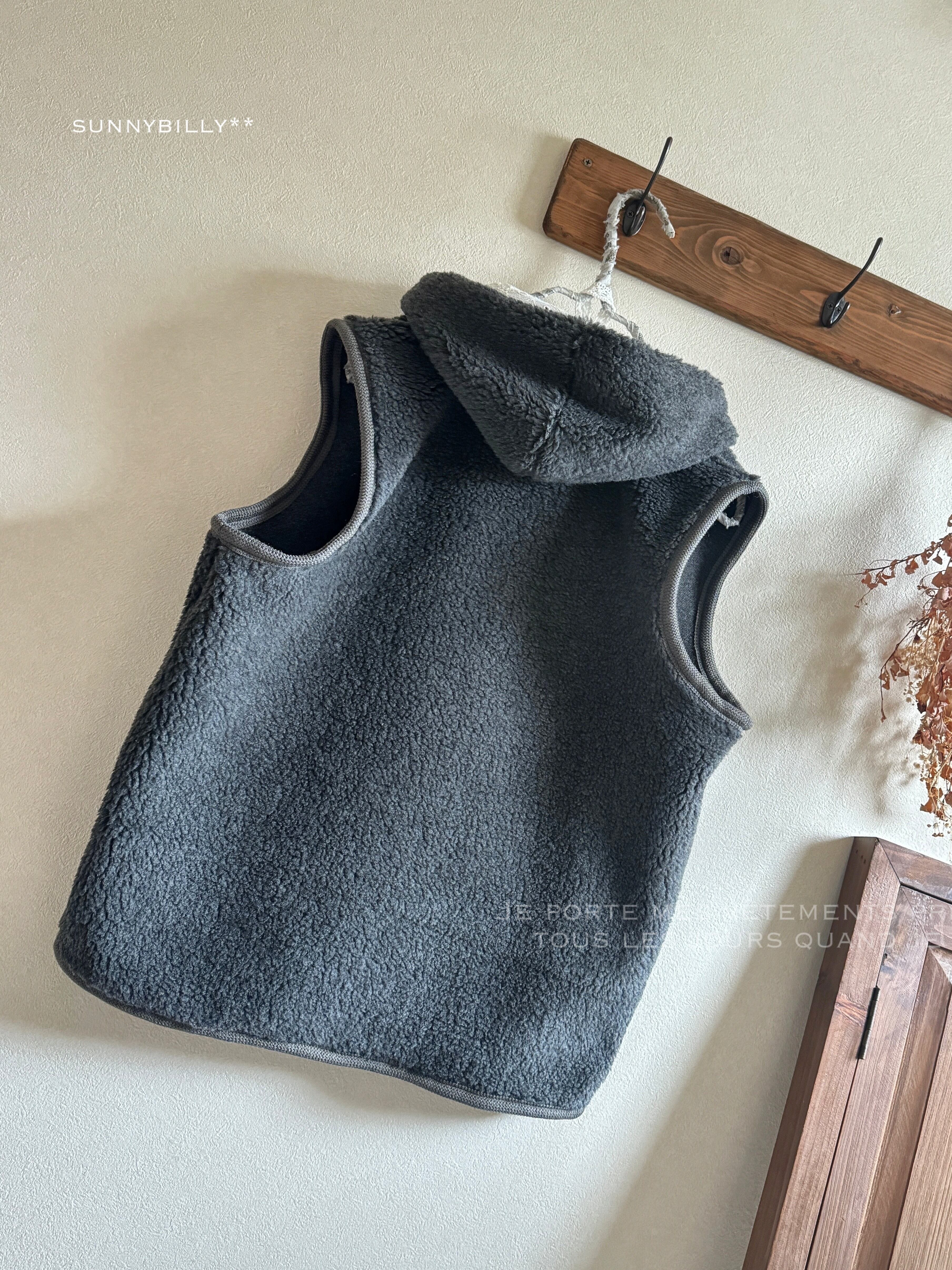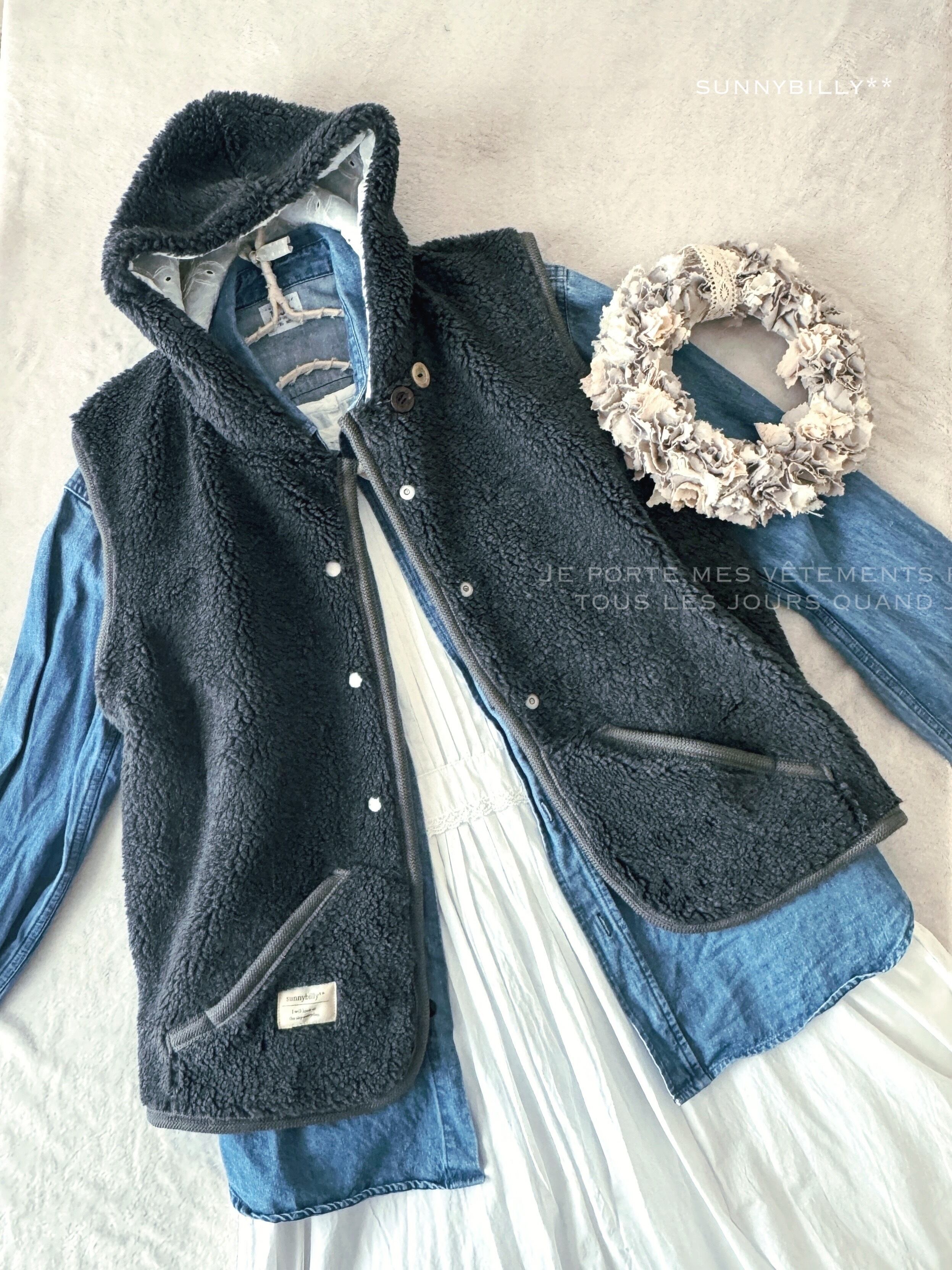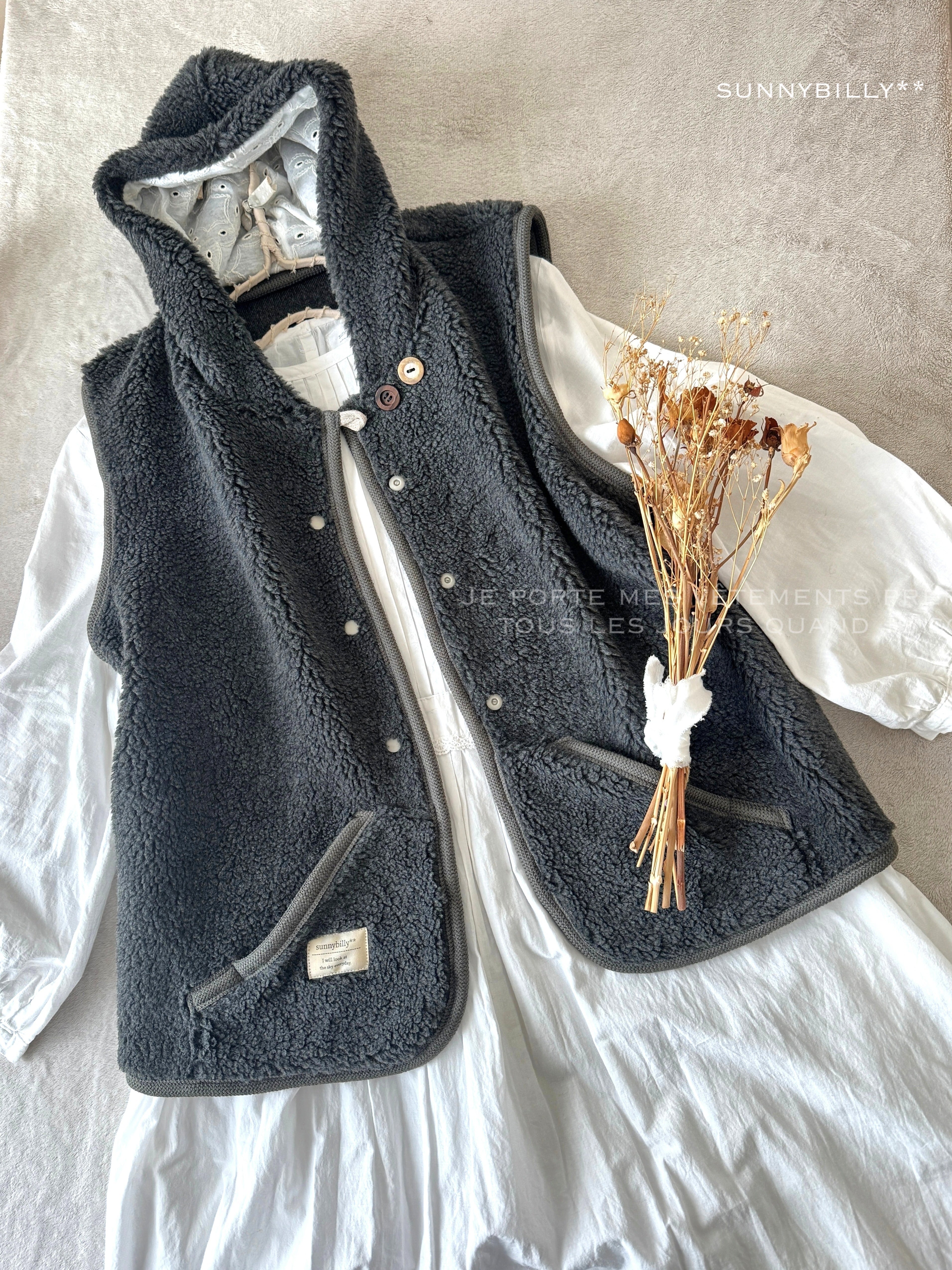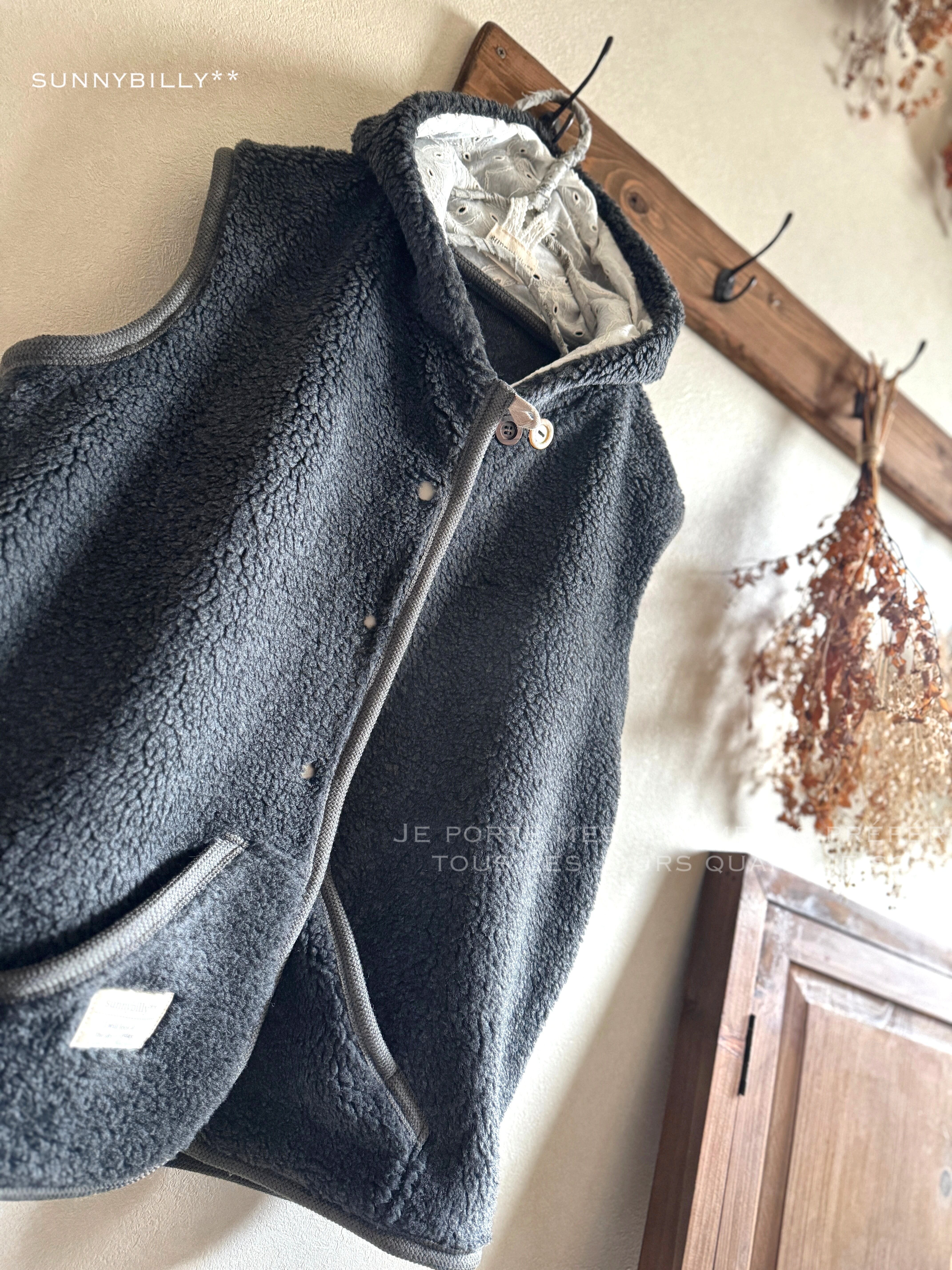 【B品につき値下げ】もこもこボアのベスト/チャコールグレー