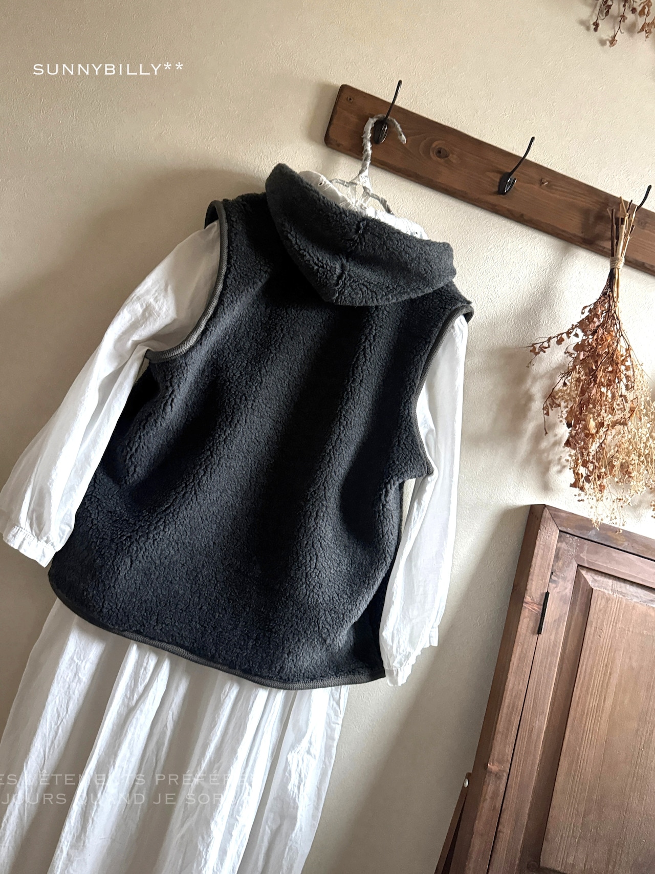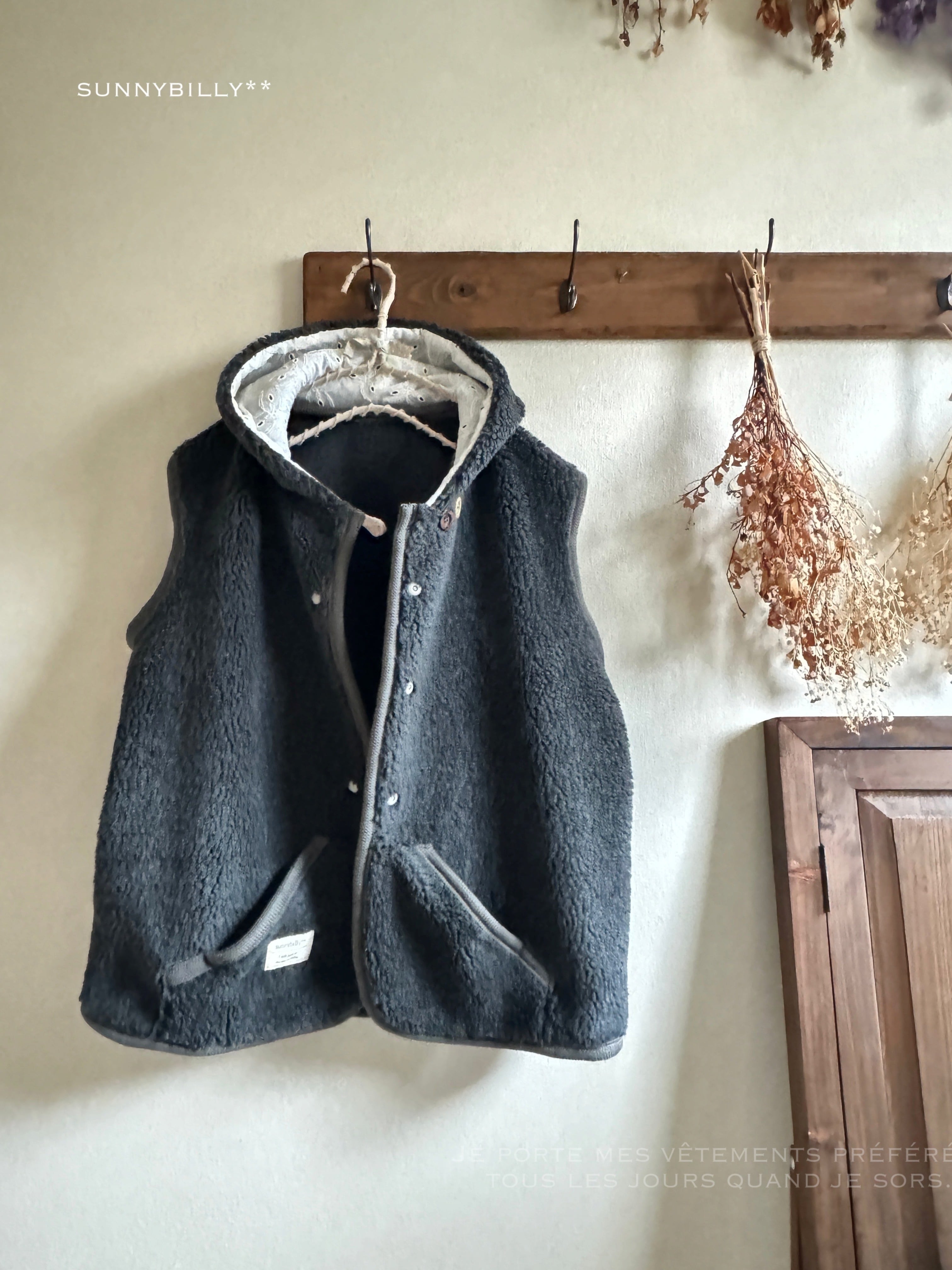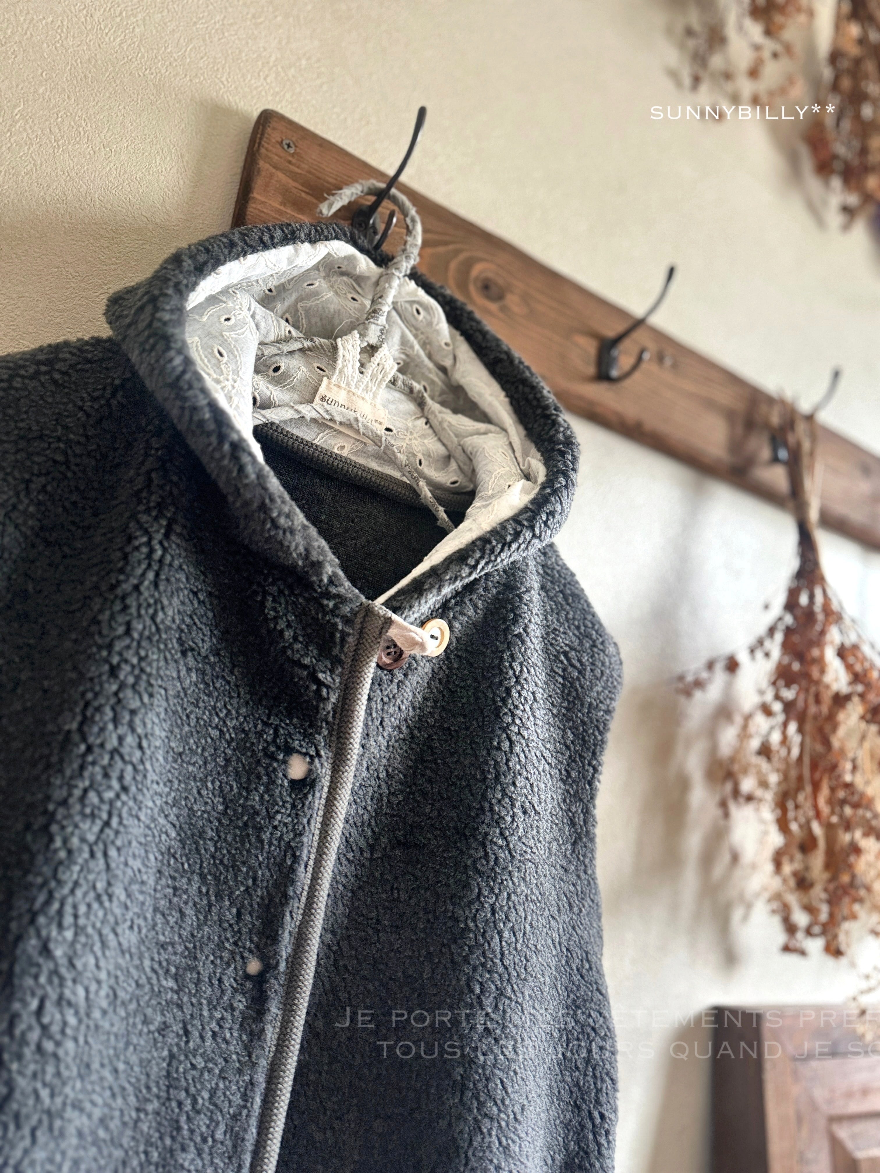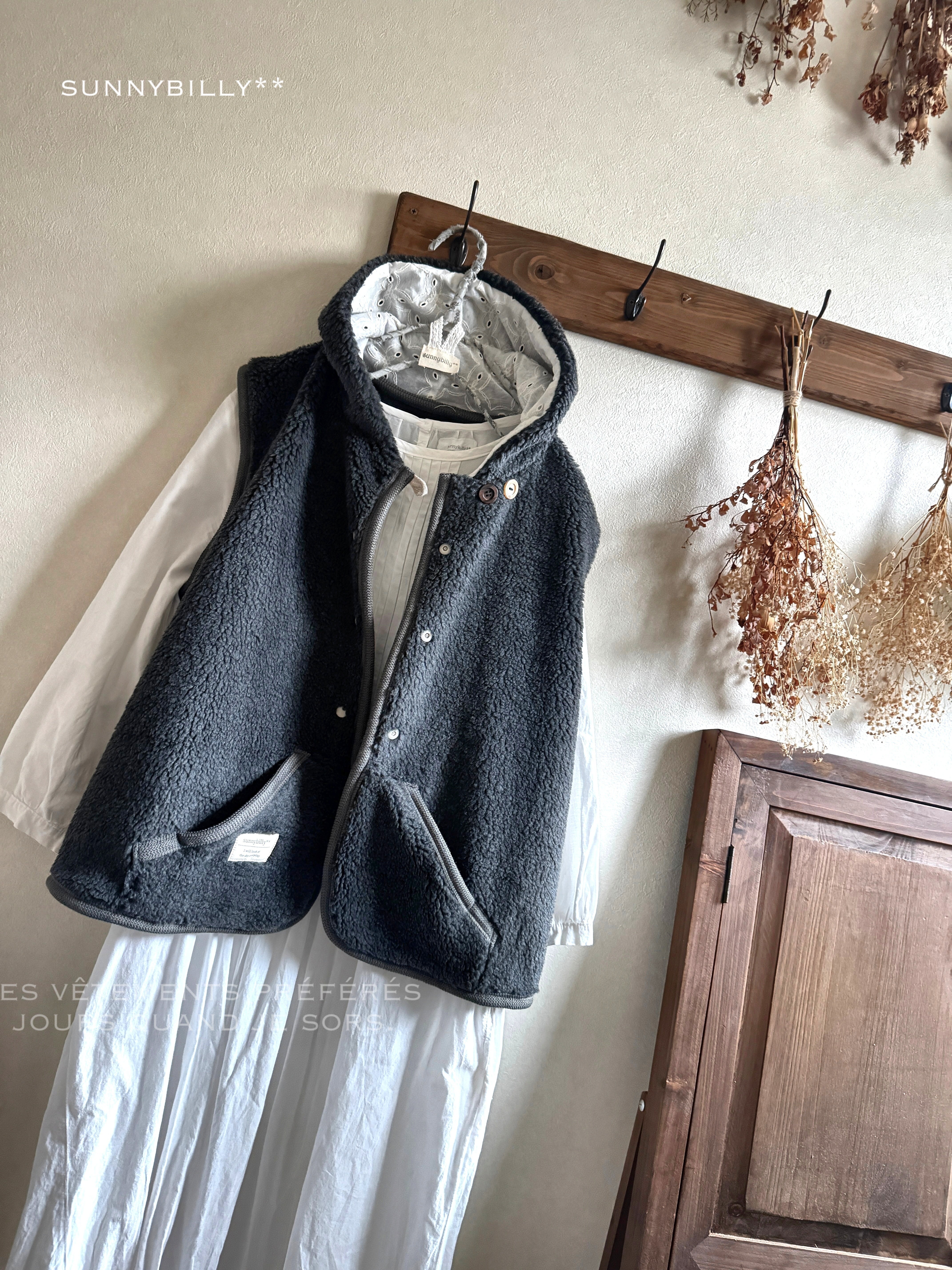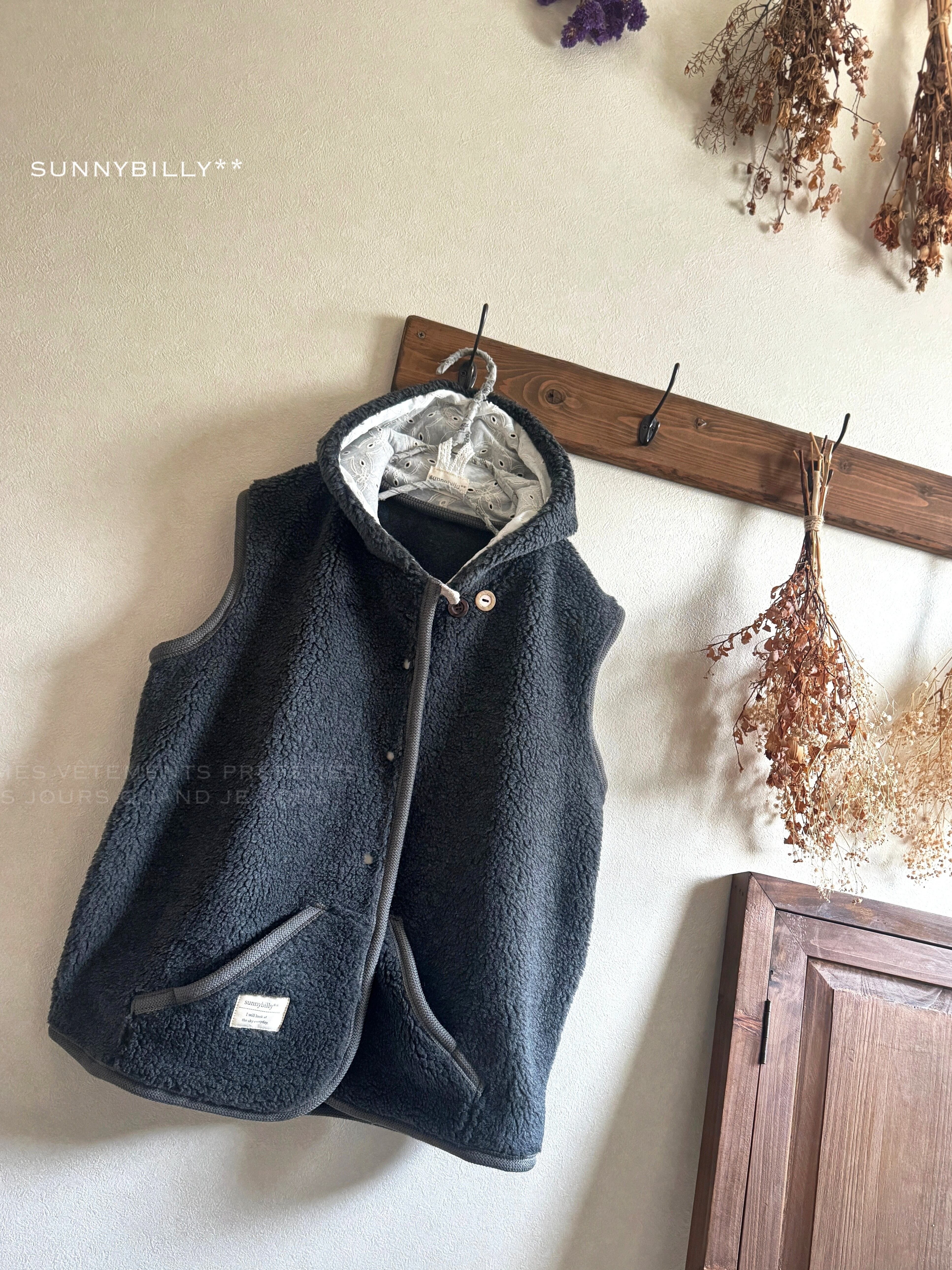 【B品につき値下げ】もこもこボアのベスト/チャコールグレー