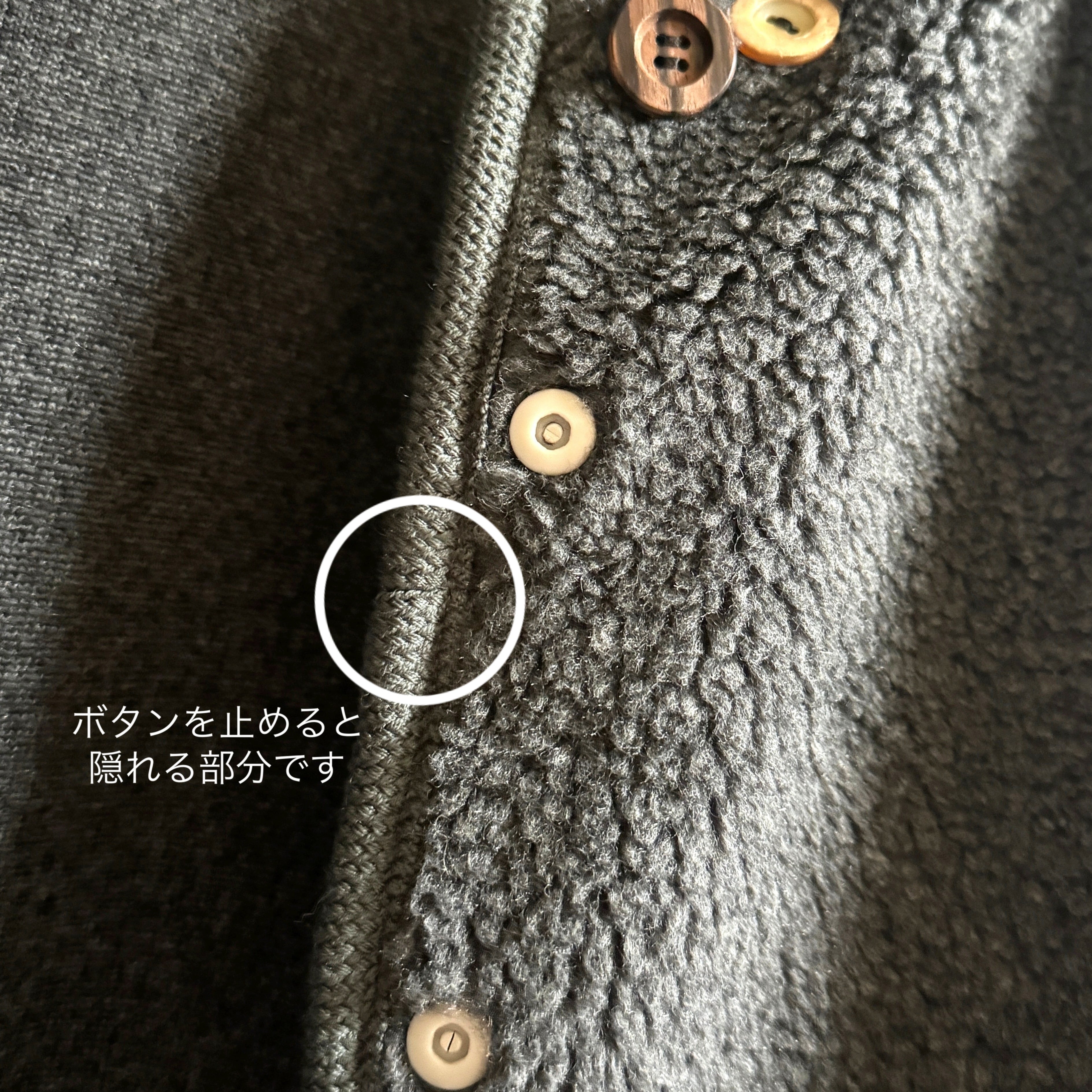 1ヶ所はボタンを止めた際に隠れる場所