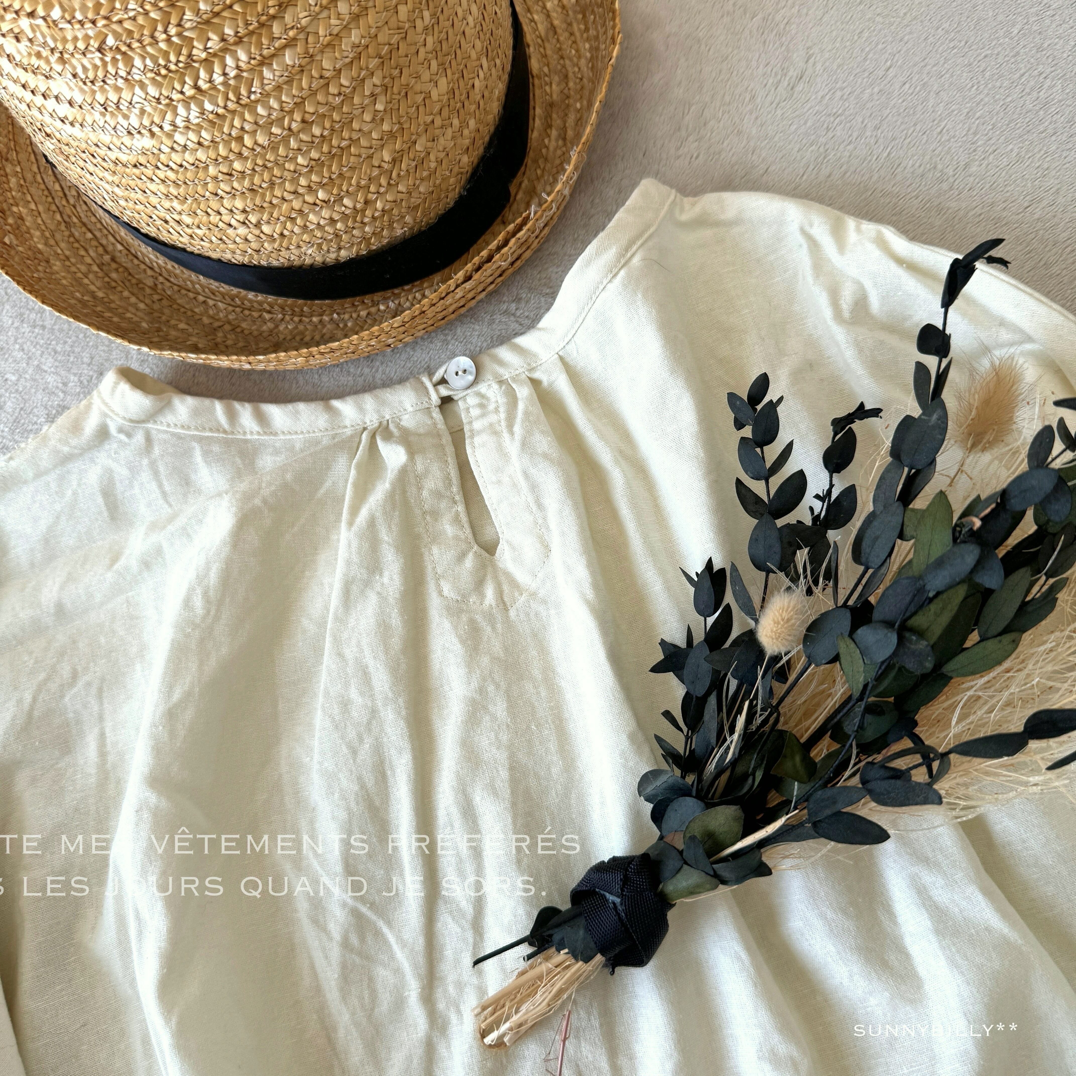 【受注制作/袖丈変更可】綿麻 胸元デコール プルオーバー(7分袖/長袖)